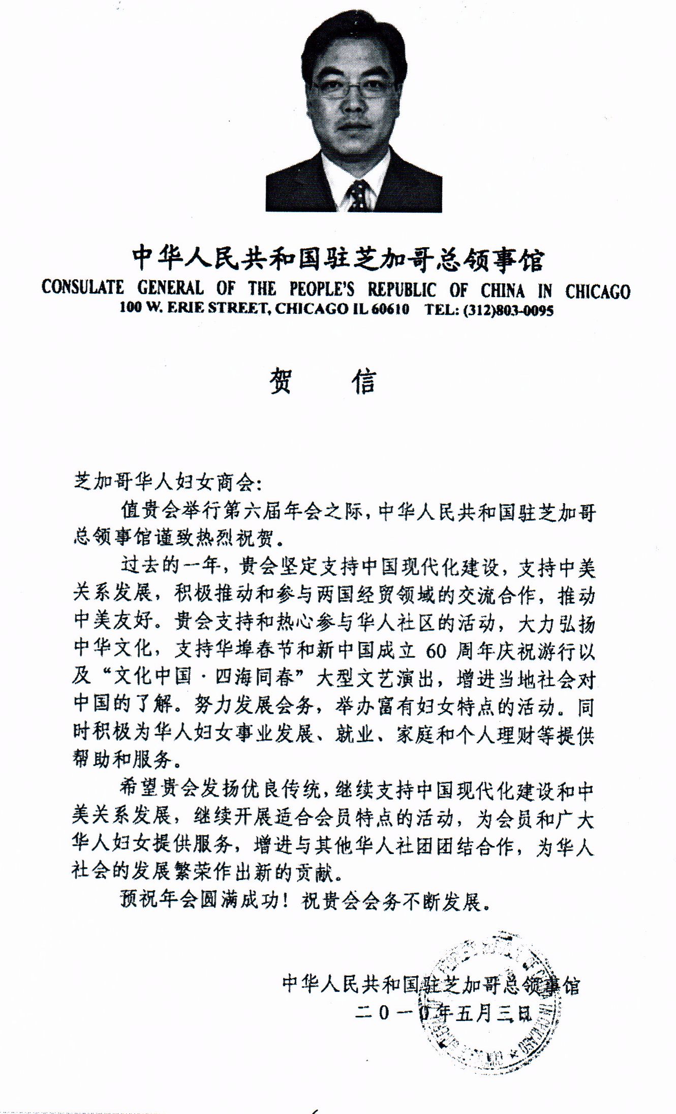 中国住芝加哥总领事馆总领事